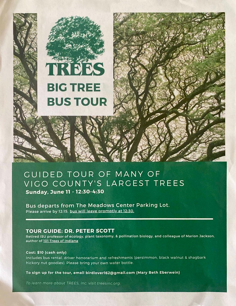 I may post pictures of our big trees at some point, but for now you can see them in person by joining the tour! As of this post, there were still 8 seats available. See the flyer below for more information.